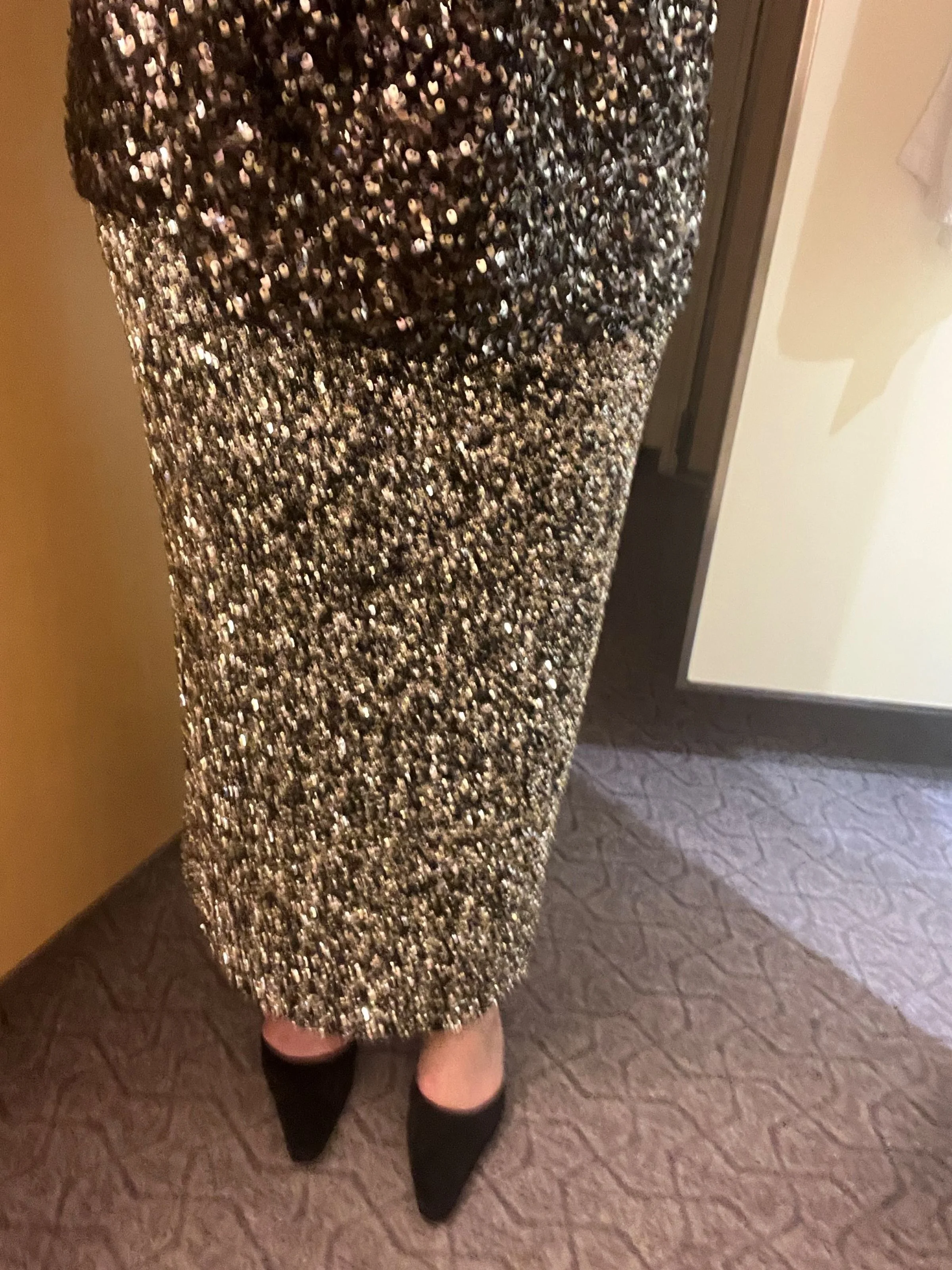 I wore a SEQUIN TWO-SET. I felt like a million dollars that night, I tell no lie